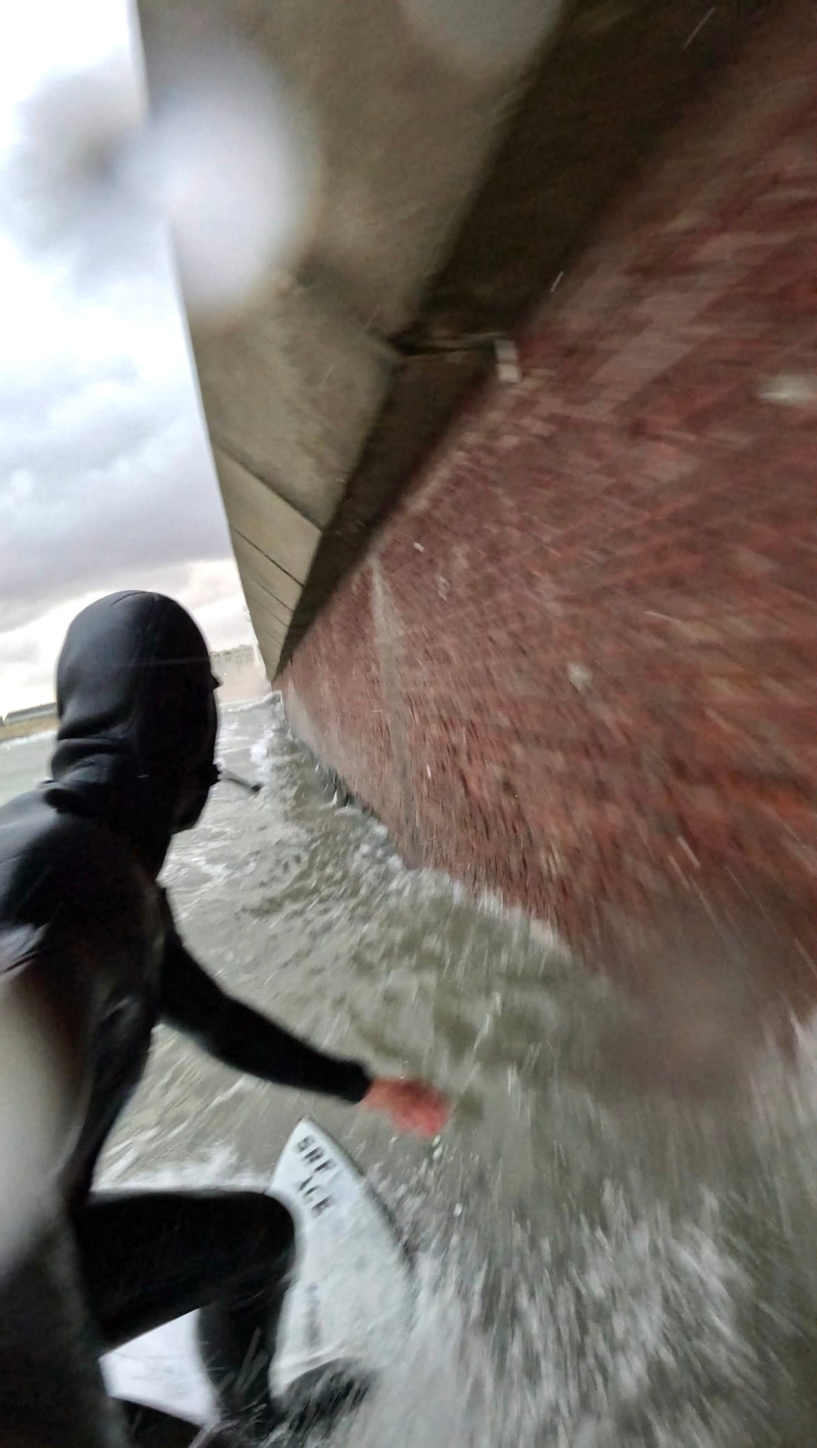 This week, when an Atlantic storm tracked more west than usual and provided a strong pulse of swell and howling winds, he decided to head back to a spot in the harbour that was protected with his mate Seger De Bekker.