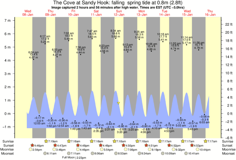 Forecast wind and swell just offshore from The Cove at Sandy Hook around the time the photo was taken